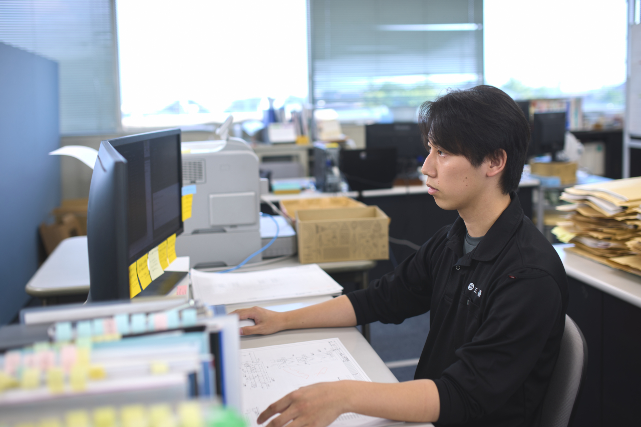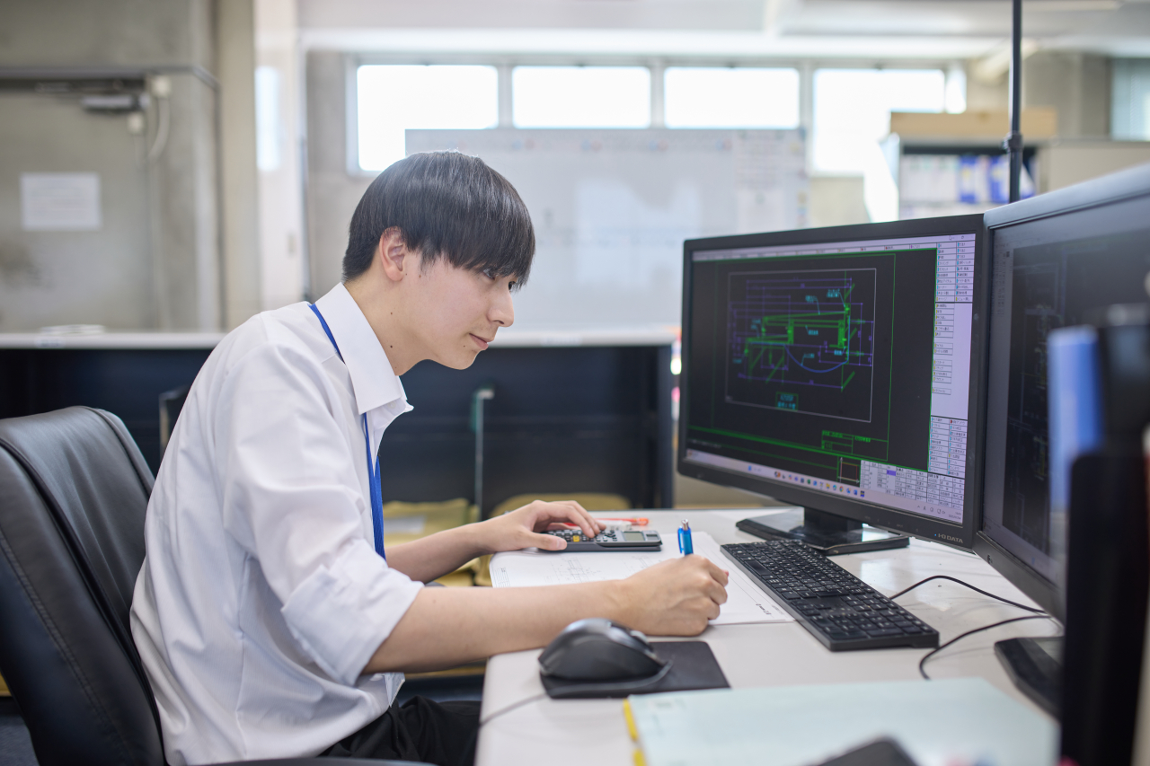 現在は、建築図をもとに製品に合わせた施工図をCADで作成し、お客様との打ち合わせも担当しています。自分が携わった建物を目にしたとき、自分の仕事がカタチとして残っていることを実感でき、大きなやりがいを感じます。